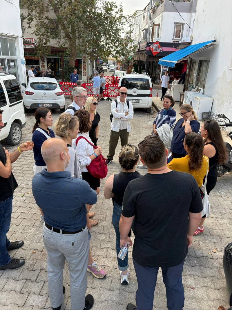 Programın ikinci gününde Bodrum Belediyesi, projenin pilot uygulama alanı olan Bahçelievler Mahallesi Karcı Sokak’taki yayalaştırma çalışmalarıyla ilgili bir sunum gerçekleştirdi. Sunumdan sonra heyet, Turgutreis bölgesine giderek Bahçelievler Mahalle Muhtarı Fatma Akalan ile birlikte Karcı Sokak’ta yapılan düzenlemeleri yerinde inceledi. Ardından Turgutreis Atatürk Meydanı, daha önce yayalaştırılan sokaklar ve yenilenen bisiklet yolu ziyaret edilerek Bodrum’un sürdürülebilir ulaşım ve yayalaştırma uygulamalarına dair katılımcılara detaylı bilgi verildi.